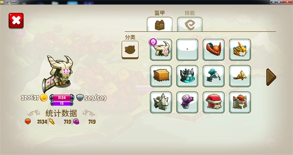 给你的冒险猫准备满满一篮装备吧!你更爱施展魔法吗?戴上神秘帽子、穿上神秘长袍、拿起神秘法杖,你的法力值会大幅提升哦!想保护自己免受攻击?那就给冒险猫穿上链甲,提升生命值和防御力。把武器、盔甲和魔咒自由搭配,打造专属于你的完美游戏模式!
