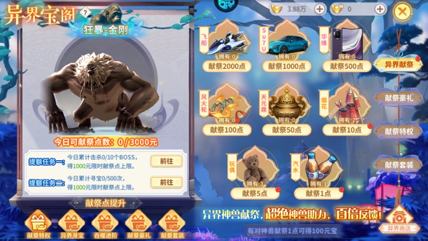 5、在异界宝阁内可以通过献祭点数获得装备。