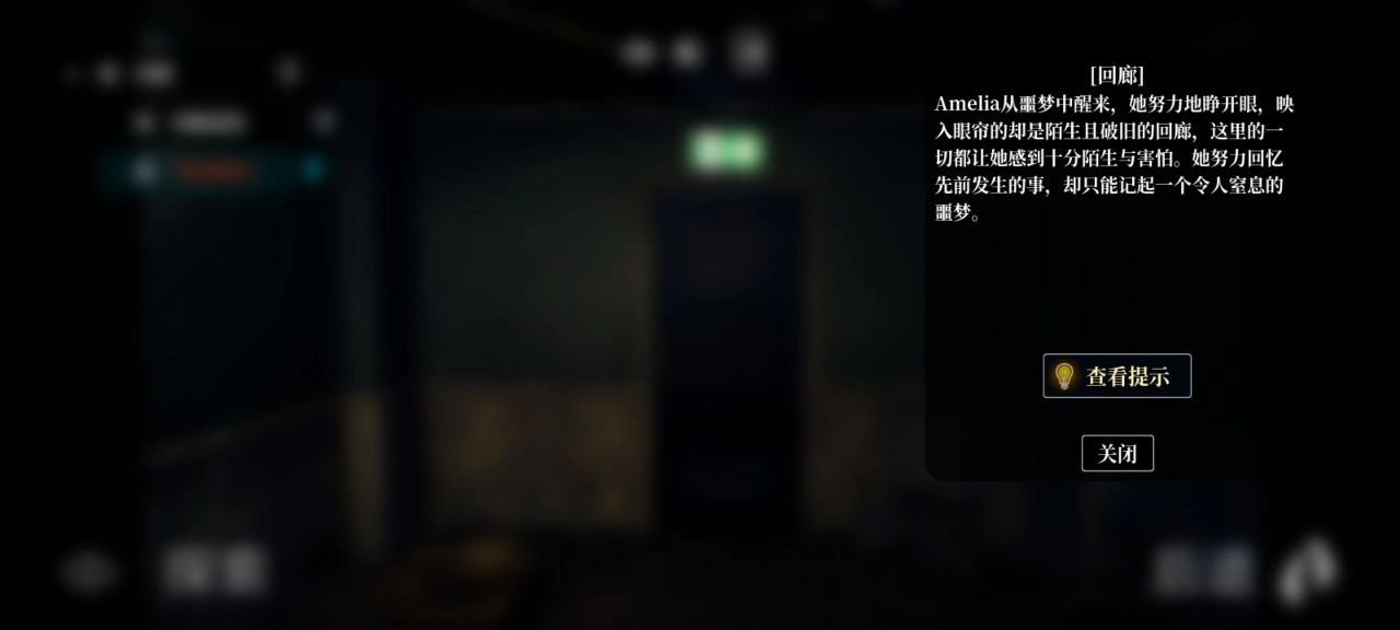 5、回廊前段,主人公Amelia在回忆这是哪里。