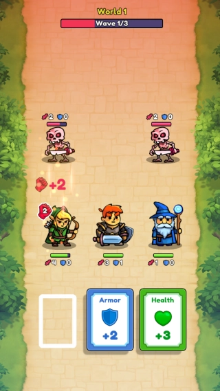 1. 玩家需指挥一支包含弓箭手、战士与法师的冒险小队,借助对卡牌资源的合理分配来战胜敌人。