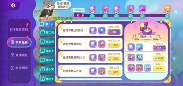 为了帮助刚上任的馆长更快熟悉餐馆经营,我们还会推出【萌新任务】和【最佳馆长】活动,跟着任务一步步了解经营规则吧!
