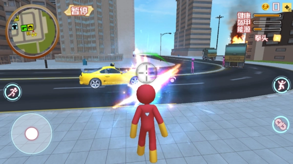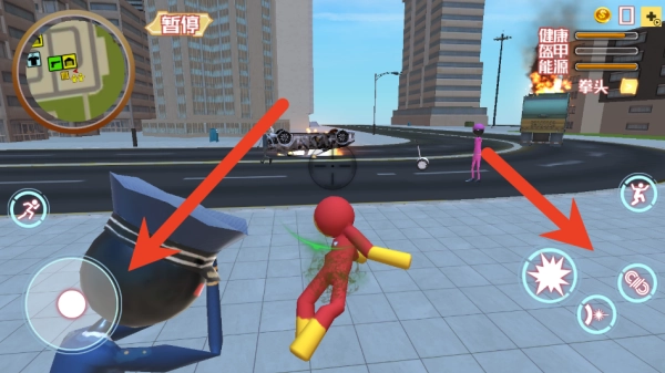进入游戏创建角色后,你会即刻变身为火柴人战士空降至犯罪都市,随后通过简洁的教程熟悉移动、射击与绳索飞荡这些基础操作。