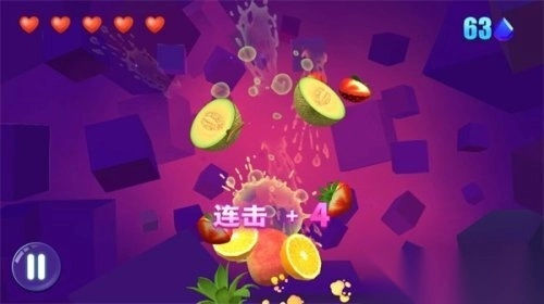 1.无尽水果模式:该模式下水果会源源不断地出现,每当发生滑动导致炸弹爆炸,或是有水果掉落未被划碎时,都会扣除一颗红心生命值。