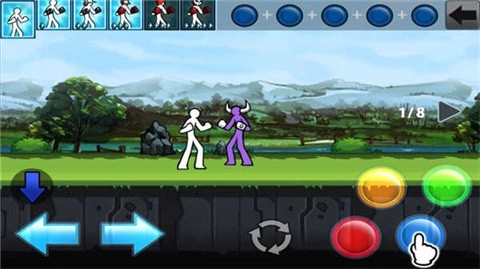 你可以通过点击屏幕上的虚拟按键,指挥火柴人完成左右移动、挥拳踢腿之类的攻击动作。
