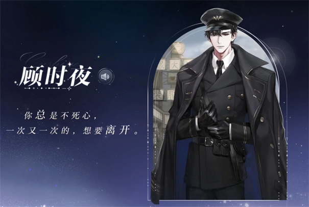 顾时夜是世界之外四大男主之一,目前还不确定游戏公测时会不会更换角色设定。他是位风度翩翩的商人,凭借出众的聪明才智与敏锐的商业头脑积累了巨额财富。他对女主角怀有好感,在游戏里始终扮演着坚定的支持者与守护者角色。