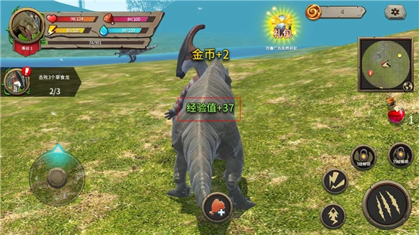 3、每次击败恐龙后还会获得经验金币。