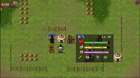 选择“让汤怀、张显主动出击”,先击败除了为首恶贼之外的3个贼兵,并且选择“饶恕”他们。等恶贼再次返回时,选择听取对方的解释,接着再次击退恶贼之外的3个贼兵,之后让汤怀移动到神像左上方的格子,就能获得柳叶甲。第三回合需要堵住南门,绝对不能放敌军从这里进入;而且四个城门都必须严防死守,不能让任何一个敌人闯入,否则百姓就会全部陷入混乱状态。(岳飞要想办法触发特技,并且之后每一关都得尽量触发这个特技,这一点同样和岳银瓶的五围能力存在关联)
