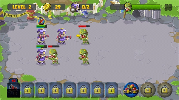 特种僵尸小队是一款十分精彩有趣的僵尸主题塔防游戏,英文名为Special Squad vs Zombies,它的整体玩法和经典的植物大战僵尸较为相似。在游戏里,玩家需要积累足够数量的金币,才能部署士兵来抵御并消灭来袭的僵尸。此外,士兵也能够通过消耗金币进行升级,升级后的士兵对敌人造成的伤害会更加可观。