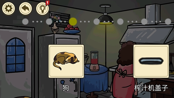 2、然后打开水龙头,将垃圾桶推倒在地,点击陶瓷刀,再点击开关打开通风口开关,最后点击吊灯即可通关。