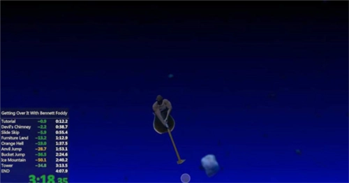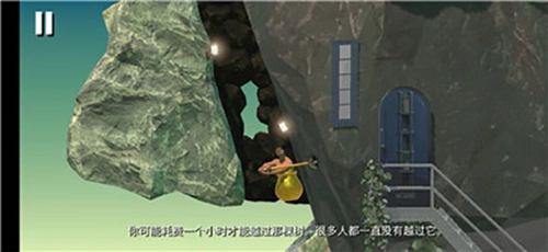 1、玩家操控着一个坐在类似缸里的角色,借助一把榔头持续向上攀爬,操作方式十分简单