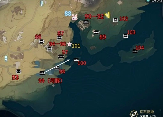 荒石高地(等级范围86-104,区域内包含一名飞猎手与一个声匣)