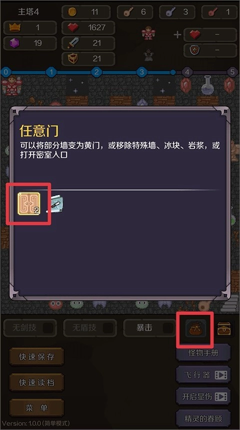 6. 魔塔阶段,进隐藏房间前最好备上几个任意门,同时要保证血量处于健康状态,不然很容易被困住;隐藏房间的特点是通常没有可购买的物品,就算身上有钱也没地方花。