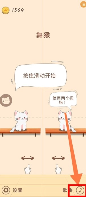 启动猫咪二重奏游戏后,点击界面右下角的箭头按钮,找到对应的歌曲图标。