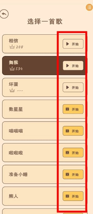 当歌曲选择界面弹出时,玩家能看到自己已经解锁的歌曲,点击想要游玩的那首,就能开始播放了。