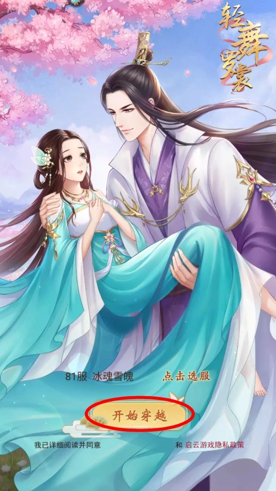 在阅读并同意服务协议和隐私政策后,点击“开始穿越”按钮即可进入游戏。