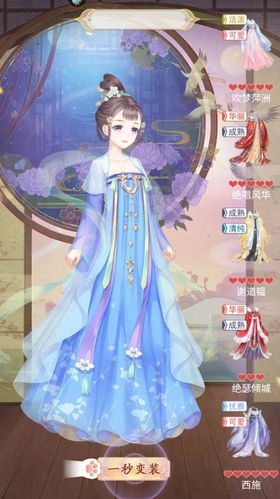 点击“一秒变装”按钮就能快速切换衣物,您也可以按照自己的喜好自由挑选搭配。