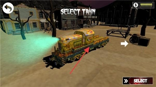 2、在【SELECT TRAIN】界面,点击箭头指向的火车,然后按下【SELECT】按钮完成确认操作。