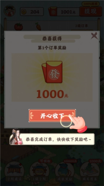4、记得多花心思打理自己的小院,解锁并升级菜地、牧场、果园这些设施,提升种植和养殖的效率,这样能帮你完成更多订单。
