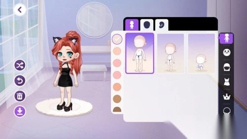 5.这里同样设置了三个场景,衣柜里摆放着各式衣物,你可以先为娃娃更换服装,随后就能着手为她进行护肤与美容护理了。
