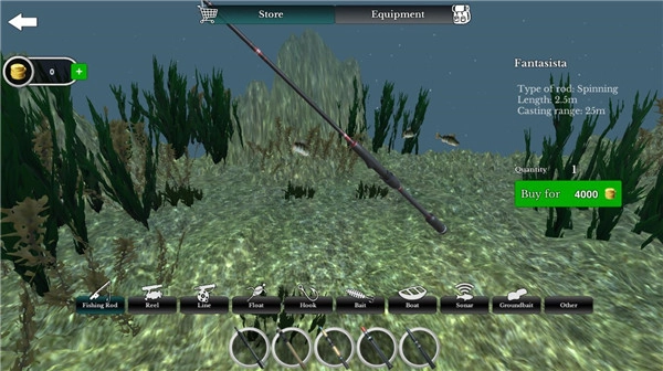 3、游戏商城里还可以更换各种鱼竿配件和鱼饵