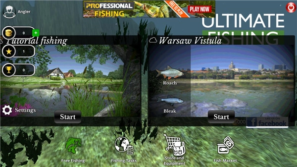1、游戏有多个钓鱼场景,选择一个场景