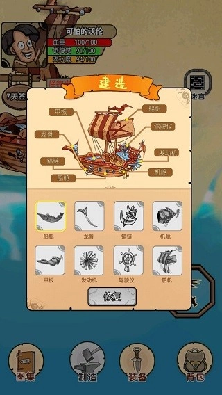 2、按照任务要求,前往船只所在位置并点击“修复”按钮,系统随即会展示修复该船只需要用到的材料。