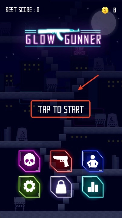 进入游戏后,玩家会看到一个简洁直观的界面,点击“tap to start”就能开启一段射击冒险之旅。