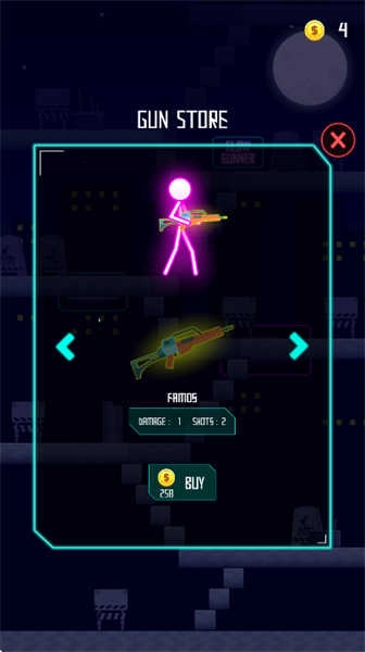 发光枪手的武器库十分丰富,玩家能自由挑选各类枪械参与战斗。所有武器均带有激光射击效果,不仅带来更炫酷的视觉体验,还增强了射击的趣味性与科幻感。每把武器都有独特的射击特点,玩家需依据敌人特性和关卡难度选择合适武器,制定最优战术。