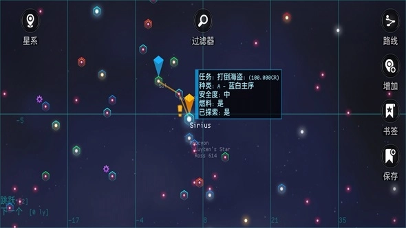-点击左上角的“星系”按钮→拖动鼠标选中目标星系→点击右上角的“路线”选项来设置跃迁路径。
