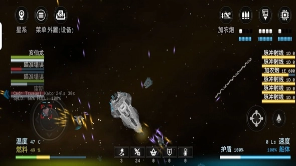 敌人信息展示于左上星系信息的下方区域,点击敌人头像即可启动武器。