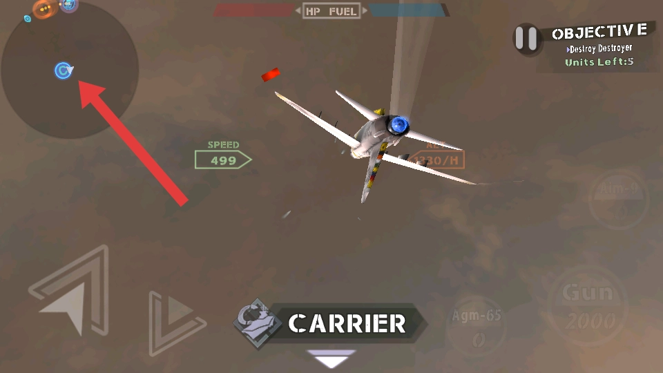 4、战斗时要留意战机速度和高度,并且按照箭头提示进行操作;如果附近有己方航母,就优先寻找地图上有标识的空中加油点。