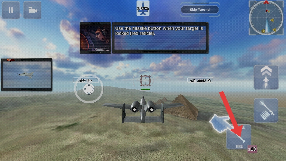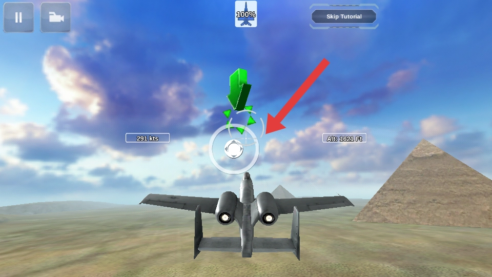 1、驾驶战机进入能看到金字塔景观的空域后,先熟悉基础操控方式,借助左侧摇杆来调整飞行方向,右侧的加力按钮则与加力燃烧室的功能相对应。