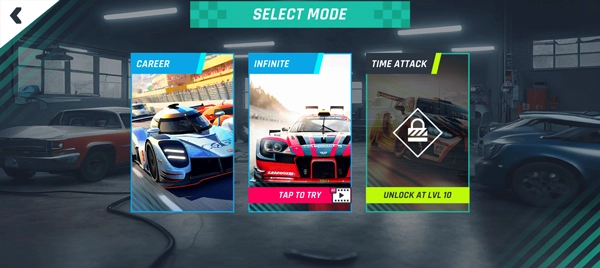 2、选好车辆后,点击“race”进入游戏关卡,先选择第一个游戏模式;
