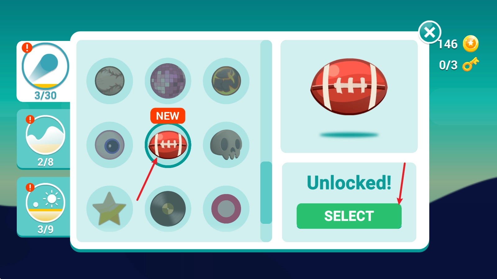 2、接下来我们挑选小球的皮肤,再点击右侧的按钮进行切换。