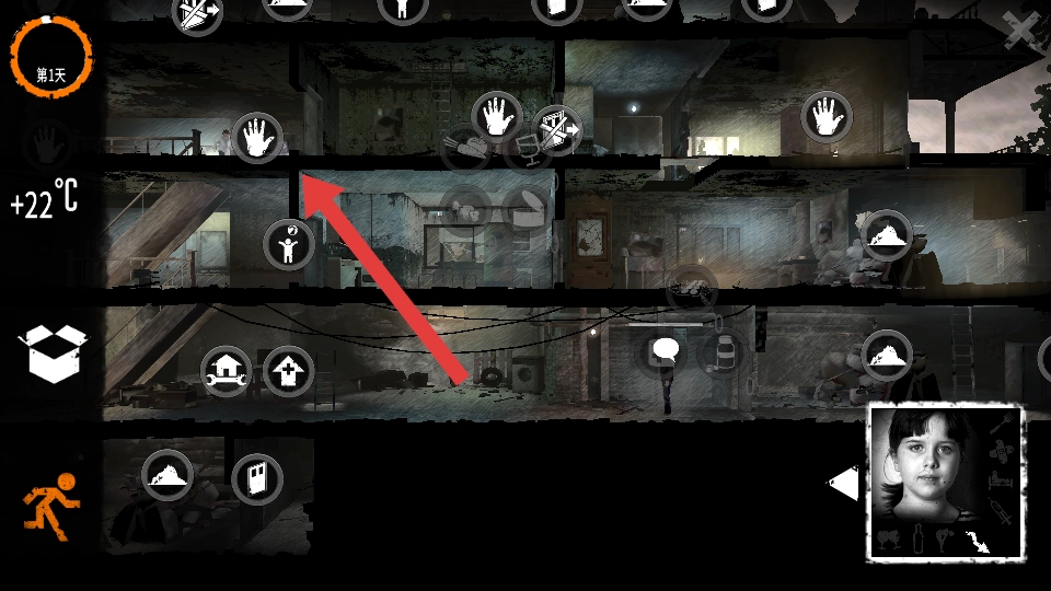 1、点击带有手掌图标的区域,进入建筑内部搜寻物资,留意房间的各个角落、柜子等地方,收集生存必需的材料和药品。