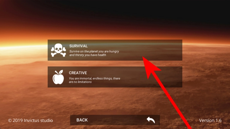 2、接着进行模式选择,在模式选择界面里,你可以按照自己的喜好来挑选生存模式。在这个模式当中,需要应对饥饿、口渴等各种状况,并且要努力维持生存状态。