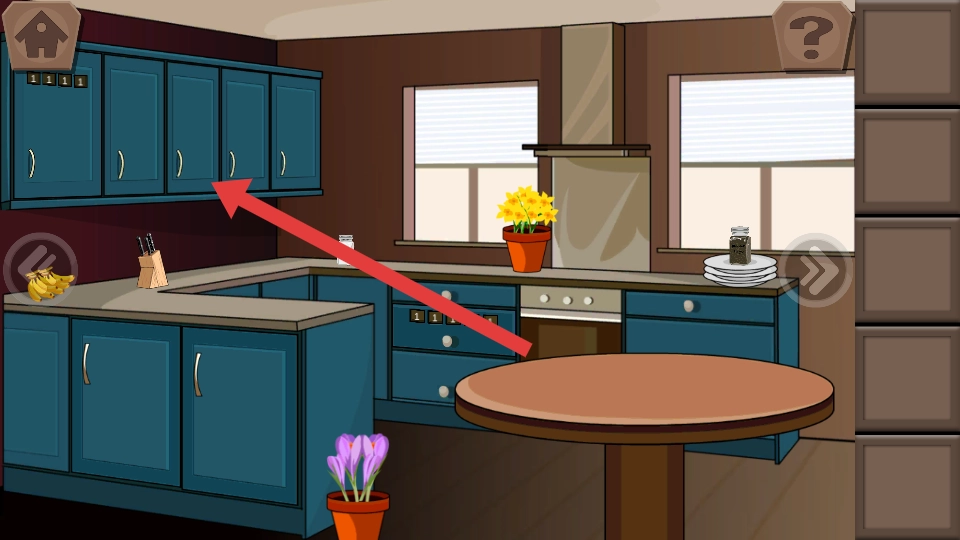3、把所有线索都收集齐全后,用花朵去填充对应的插槽,通过数字来打开密码柜,一步步解锁各个区域,最终逃出厨房;要是遇到卡关的情况,点击问号就能查看提示。