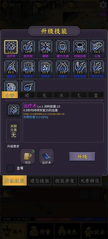 7、尸谷和尸王殿这两个地方会掉落技能书,大家可以前往土城安全区的左侧找到对应的NPC来升级技能,升级时需要用到残片、书页以及技能书这些道具。