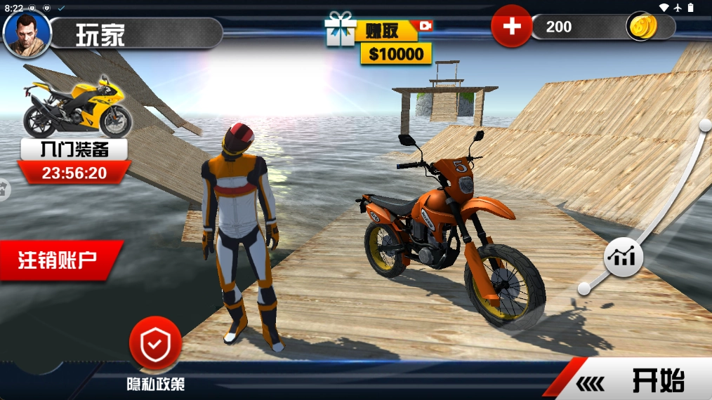 2、免费解锁与改装机制十分友好,玩家无需付费就能获取多款摩托并进行强化,得以专注于竞速乐趣本身。