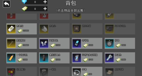 4、打开你的背包,对里面的物品和资源进行整理,还能将它们出售,以此换取一些金钱。