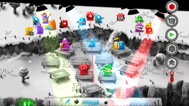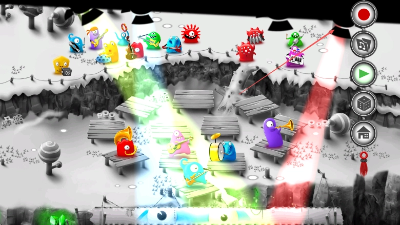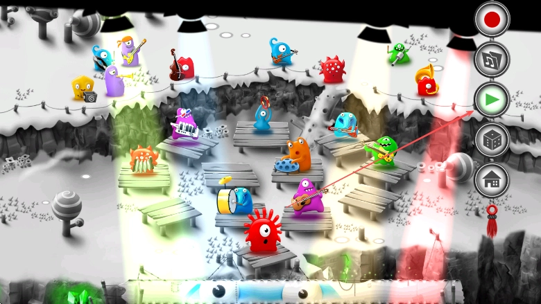 3、跟随音乐节奏持续调整果冻怪物的位置,借助功能按钮来把控演奏的进程,从而完成一场精彩的音乐表演。