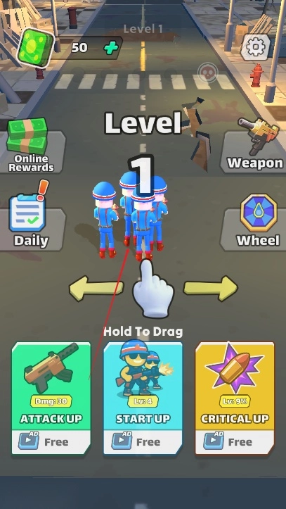 在策略性与爽快感的平衡上做得恰到好处:通过数字门调整参战人数、优化武器组合等策略设计,有效防止战斗陷入纯粹“无脑突突”的境地;与此同时,快节奏的移动射击体验以及丧尸被击溃时的视觉反馈,又充分保障了即时战斗的爽快感。这种巧妙的平衡使得游戏既能带来足够的趣味性,又具备一定的策略深度,非常适合玩家长期投入游玩。