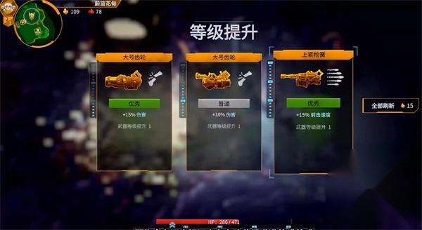5、消灭敌人掉落经验,升级后可选武器技能;