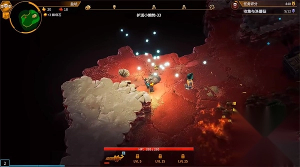 游戏里能够挖取黄金、硝石、红糖这类资源,其中黄金是用来重新挑选升级属性的,硝石可用于武器升级,红糖能补充血量,其他矿石则可以强化初始属性。进行挖矿操作时要留意安全。