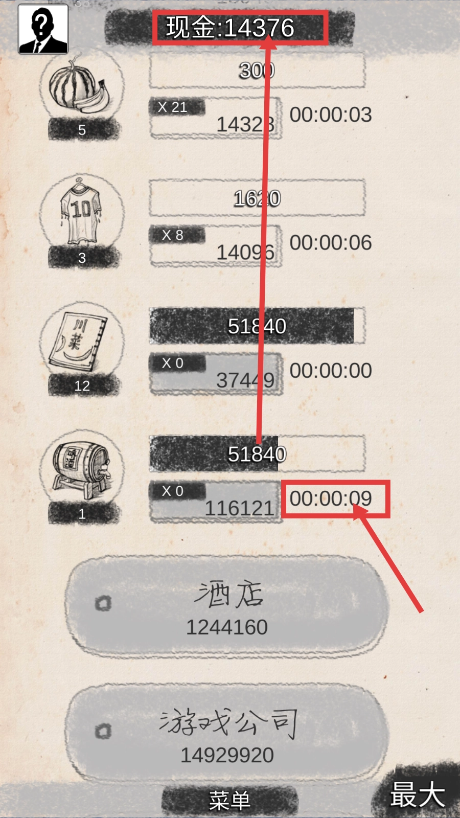 3、留意【啤酒厂-00:00:09】的收益时间节点,科学安排产业升级的节奏,提高现金积累的效率。