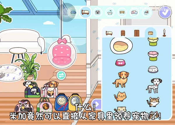 准备好和你那超级可爱的毛茸茸小家伙一起玩耍啦!用专属的家具、小床、食碗、玩具这些小物件,把你的梦想小屋装点得温馨又有趣吧!