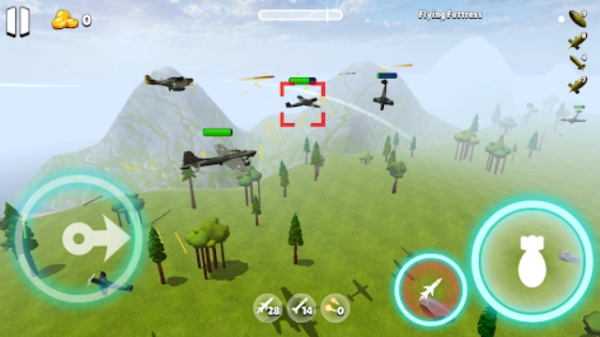 不止如此,敌人还会派出战斗机展开阻击,我们得灵活躲避,同时及时发起反击!此外,通过完成任务积累金币,用来升级发动机、装甲和机翼,提升整体性能,再装上威力更强的武器,就能助你在战场上更高效地歼灭敌人!