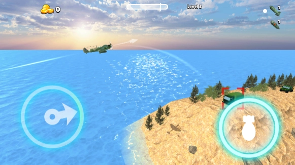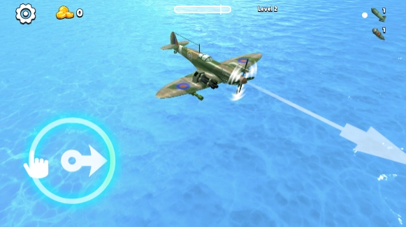 在游戏里,你只需拖动左侧的摇杆,就能操控飞机移动,飞往目标地点执行轰炸任务。