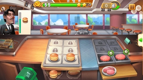3、游戏从第一关开启,玩家首先要把肉饼放置在烤架上,然后等候顾客前来点餐。