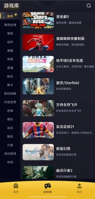 3、点击下方的游戏库,这里有很多不同的分类供大家选择;